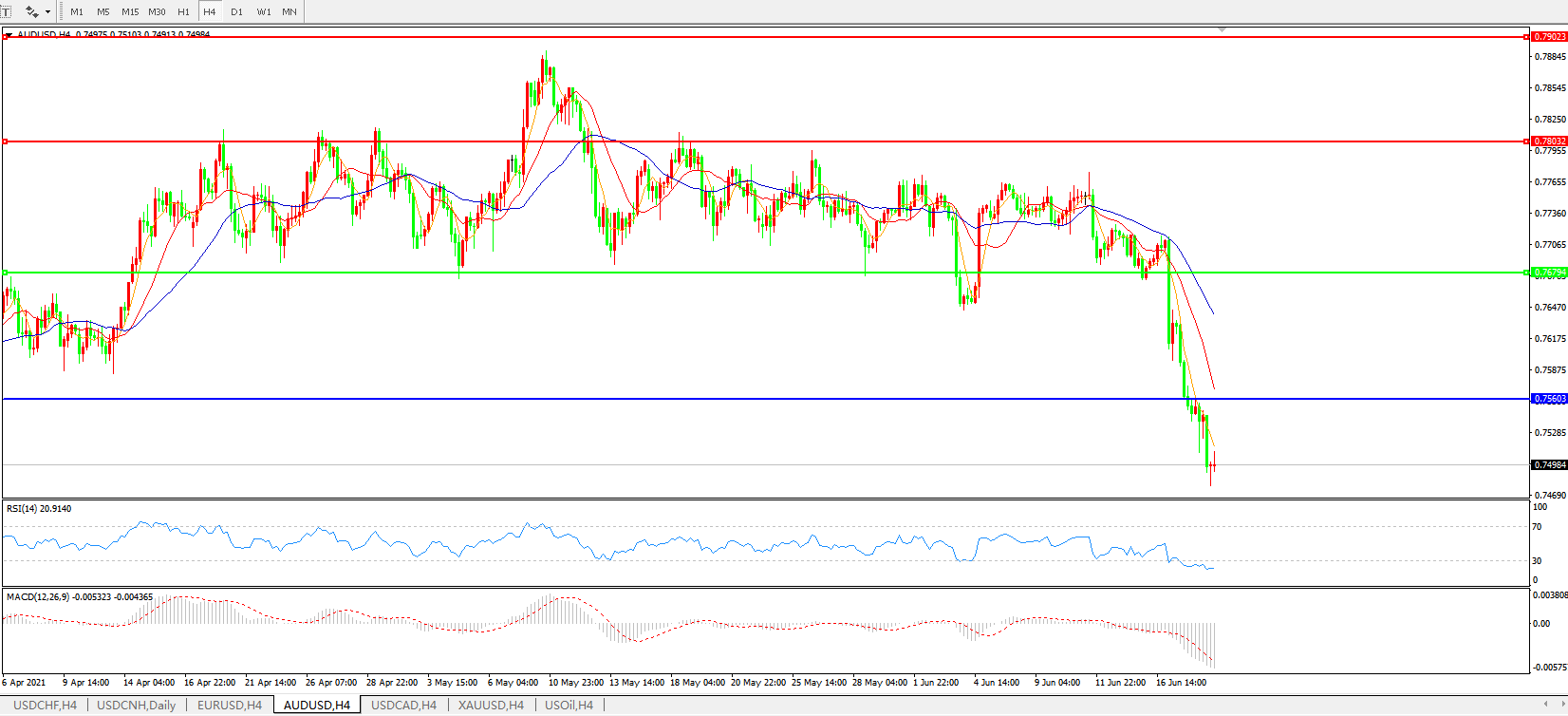 AUDUSD 4小时图: