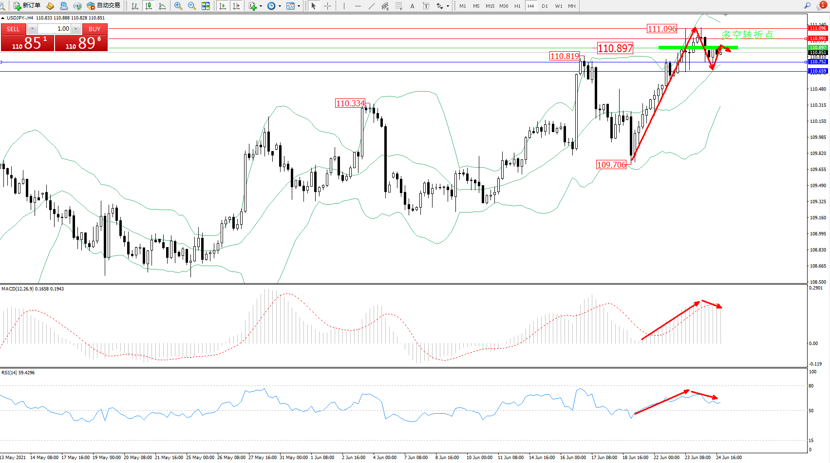 交易策略:110.897下方看跌,目标110.752、110.659