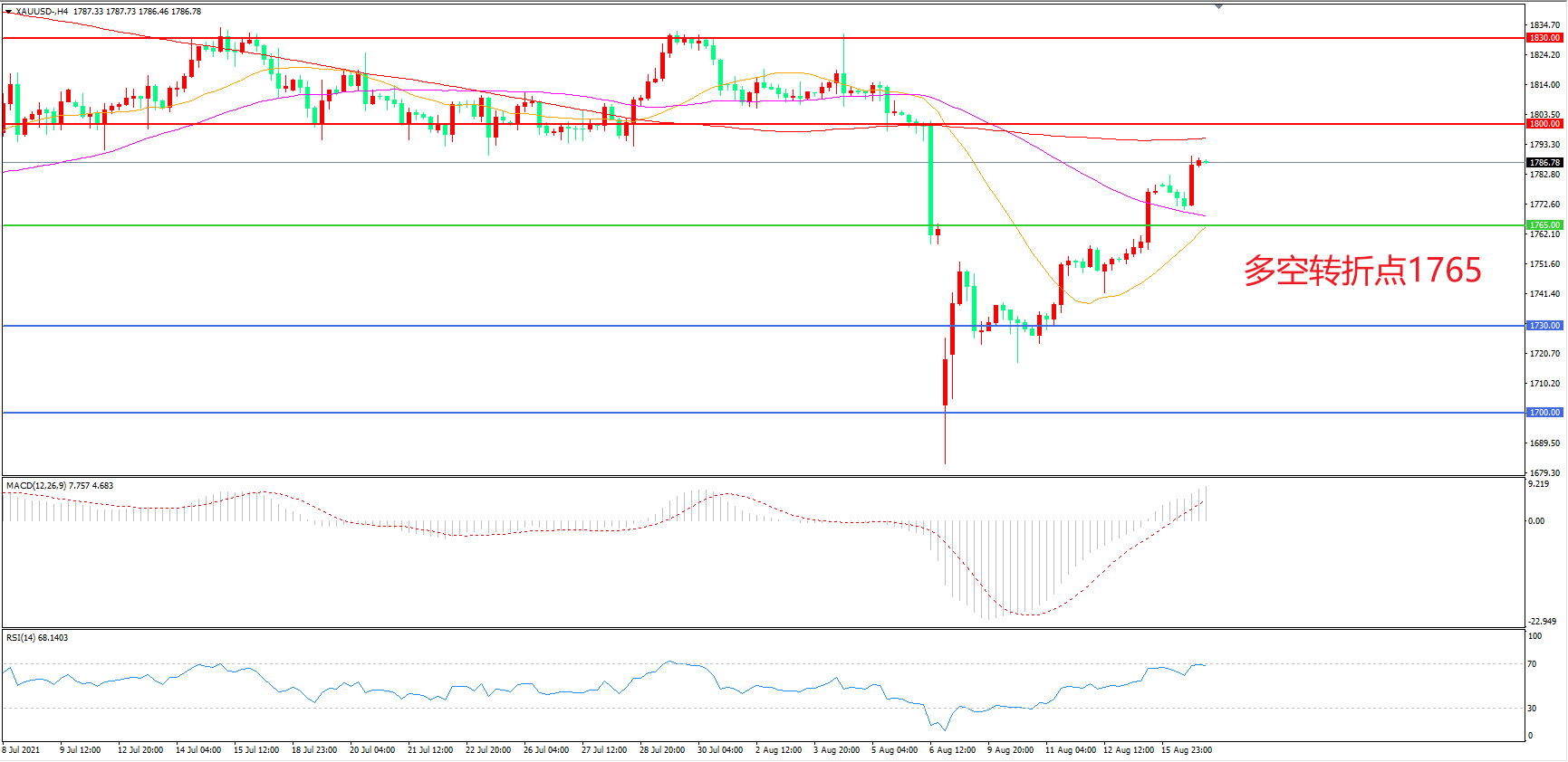 交易策略: 在1765.00之上看涨,目标1800.00 1830.00
