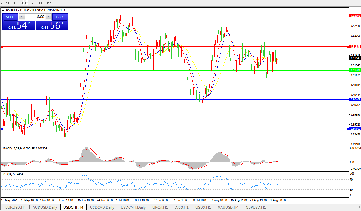 美元兑瑞郎USDCHF 4小时图: