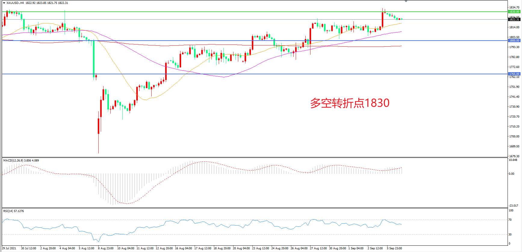 备选策略:在1830.00之下看跌,目标1800.00 1765.00