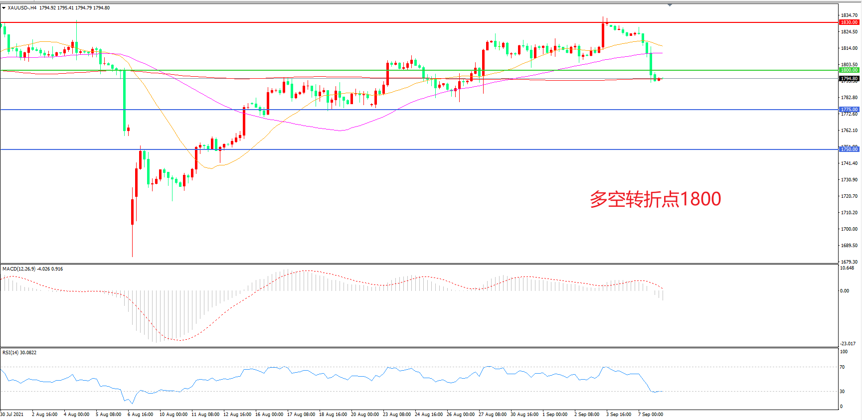 多空转折点:1800.00