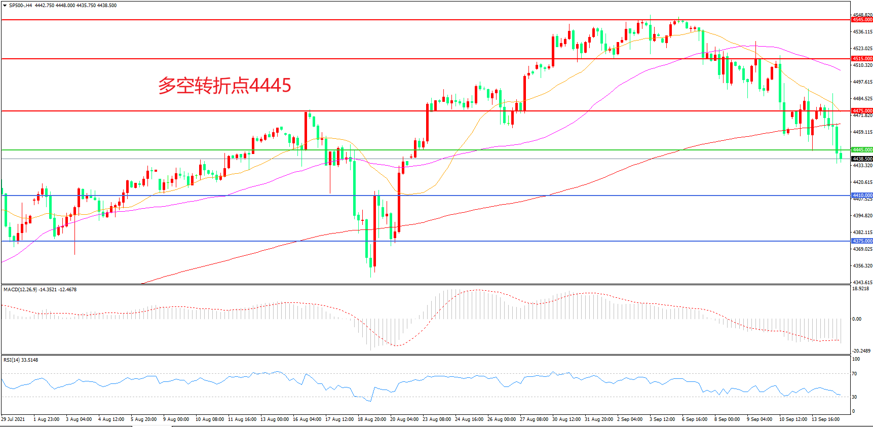 交易策略:在4445.00之下看跌,目标4410.00    4375.00