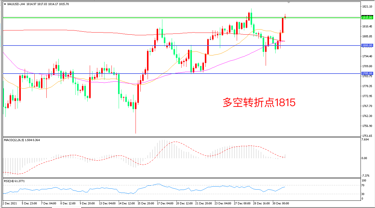 周四(12月30日),因美元指数在假日清淡交易中再度回落,金价受到支撑长阳拉升,收报1814.20美元/盎司。近期黄金的波动性因缺乏流动性而被放大,通胀会以多快的速度朝哪个方向发展,以及美联储正在采取什么措施在市场中反复交织,下周预计成交量将回升,届时金价可能会找到更多方向。