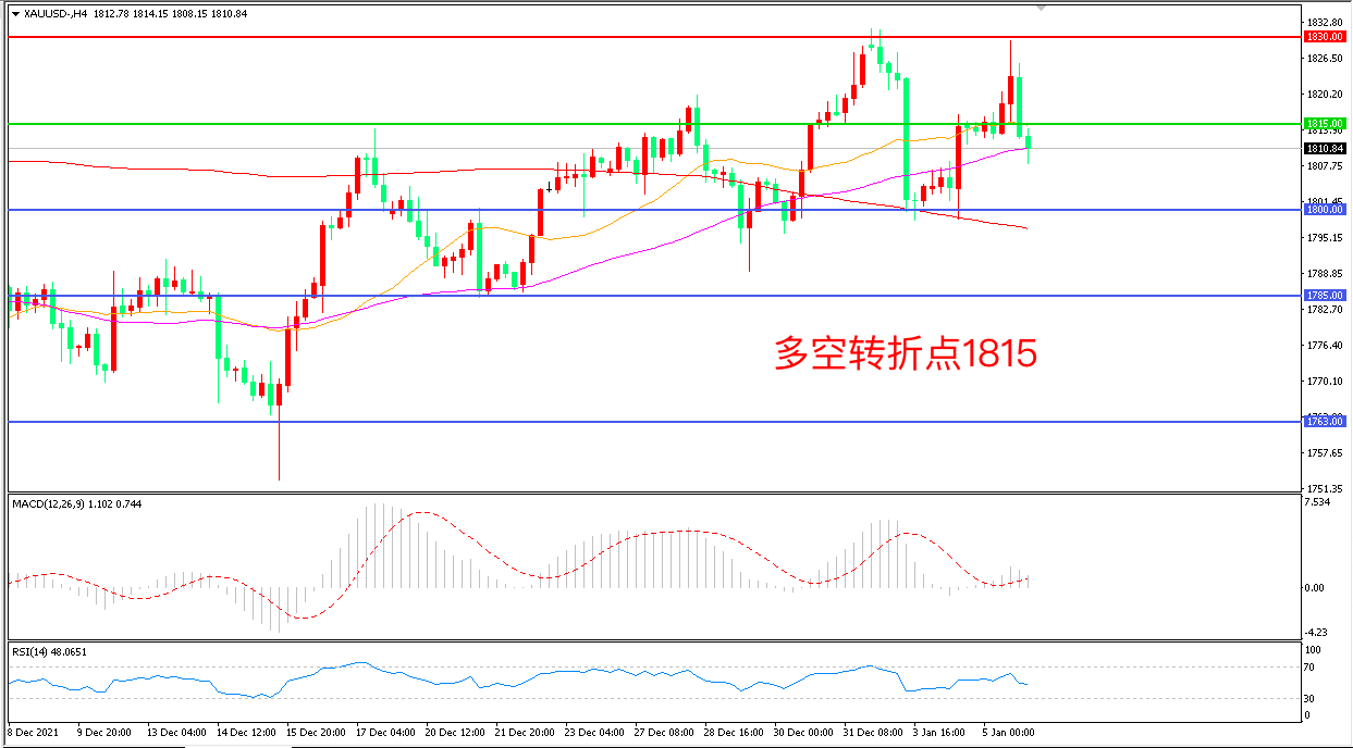 交易策略:在1815.00之下看跌,目标1800.00       1785.00