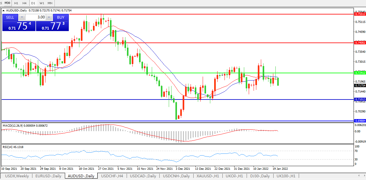 交易策略:0.7240下方看跌,目标0.7100、0.6980