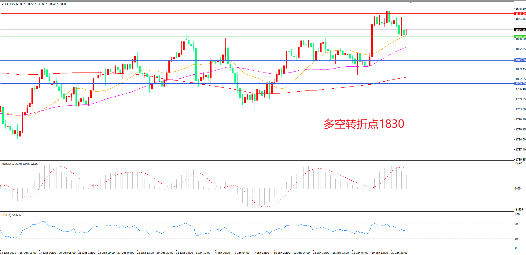 交易策略:在1830.00之上看涨,目标1845.00       1860.00