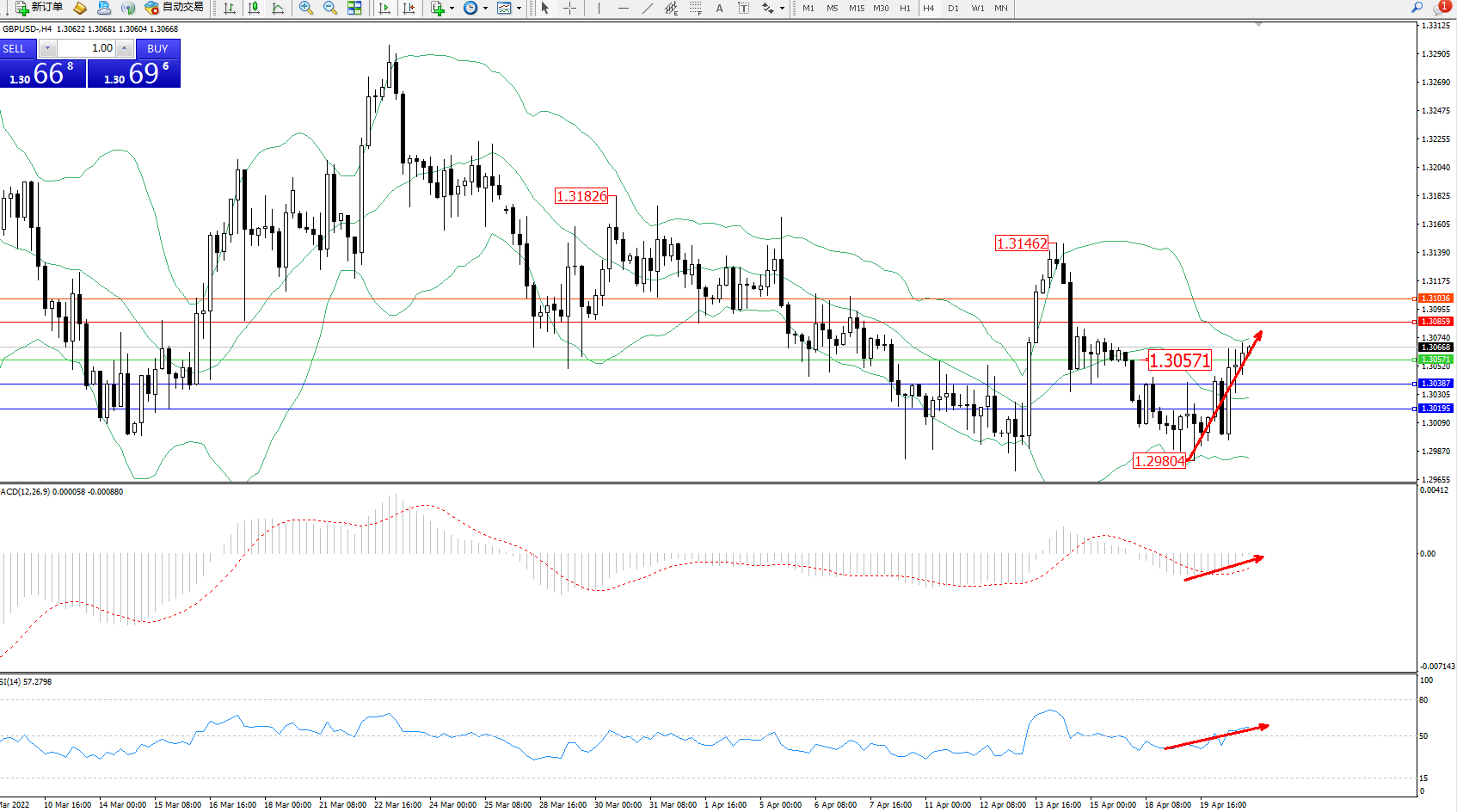 交易策略:1.30571上方看涨,目标1.30859、1.31036