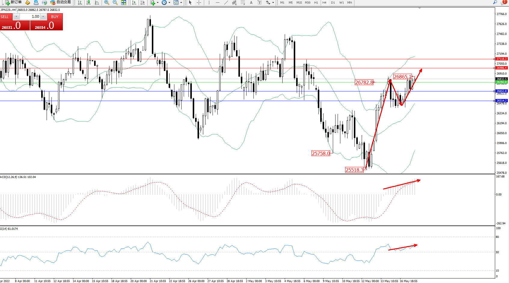交易策略:26782上方看涨,目标26986、27116