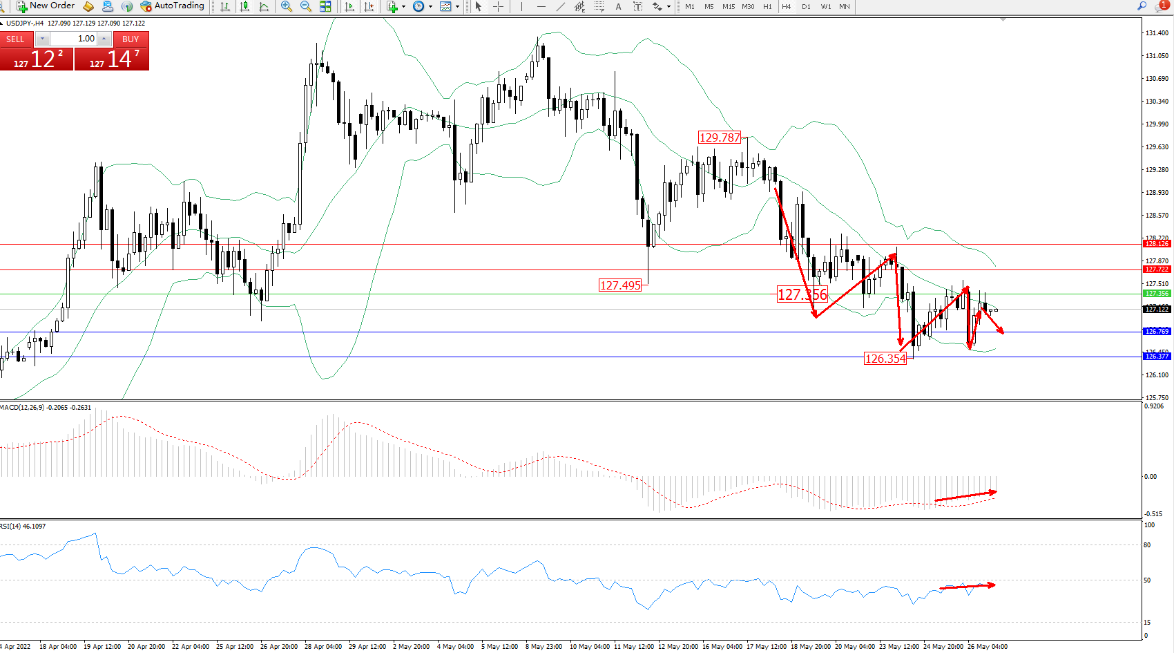 交易策略:127.356下方看跌,目标126.769、126.377