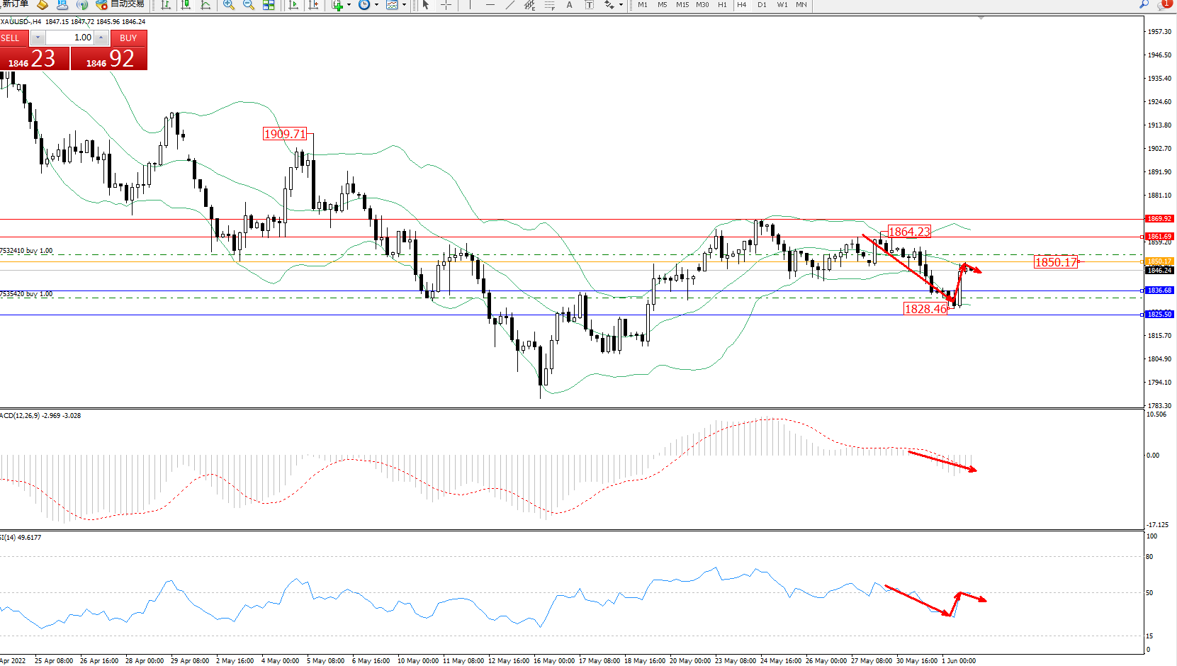 黄金维持1846附近震荡,国际金价维持震荡,通胀预期仍是居高难下。美联储或别无选择,只能坚持强硬的政策立场。