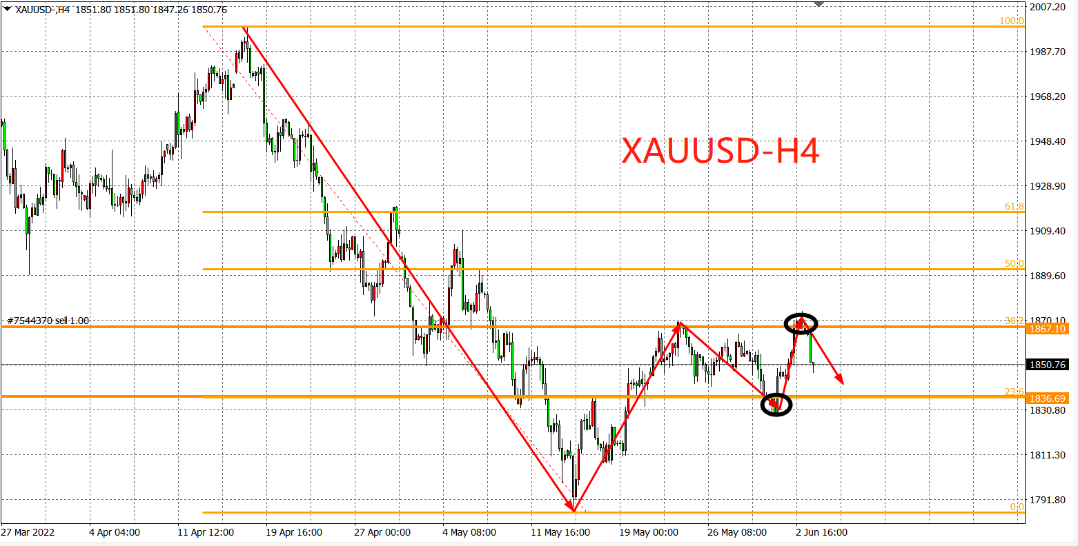 备选策略:在1836.00之下看跌,目标1820.00 1810.00