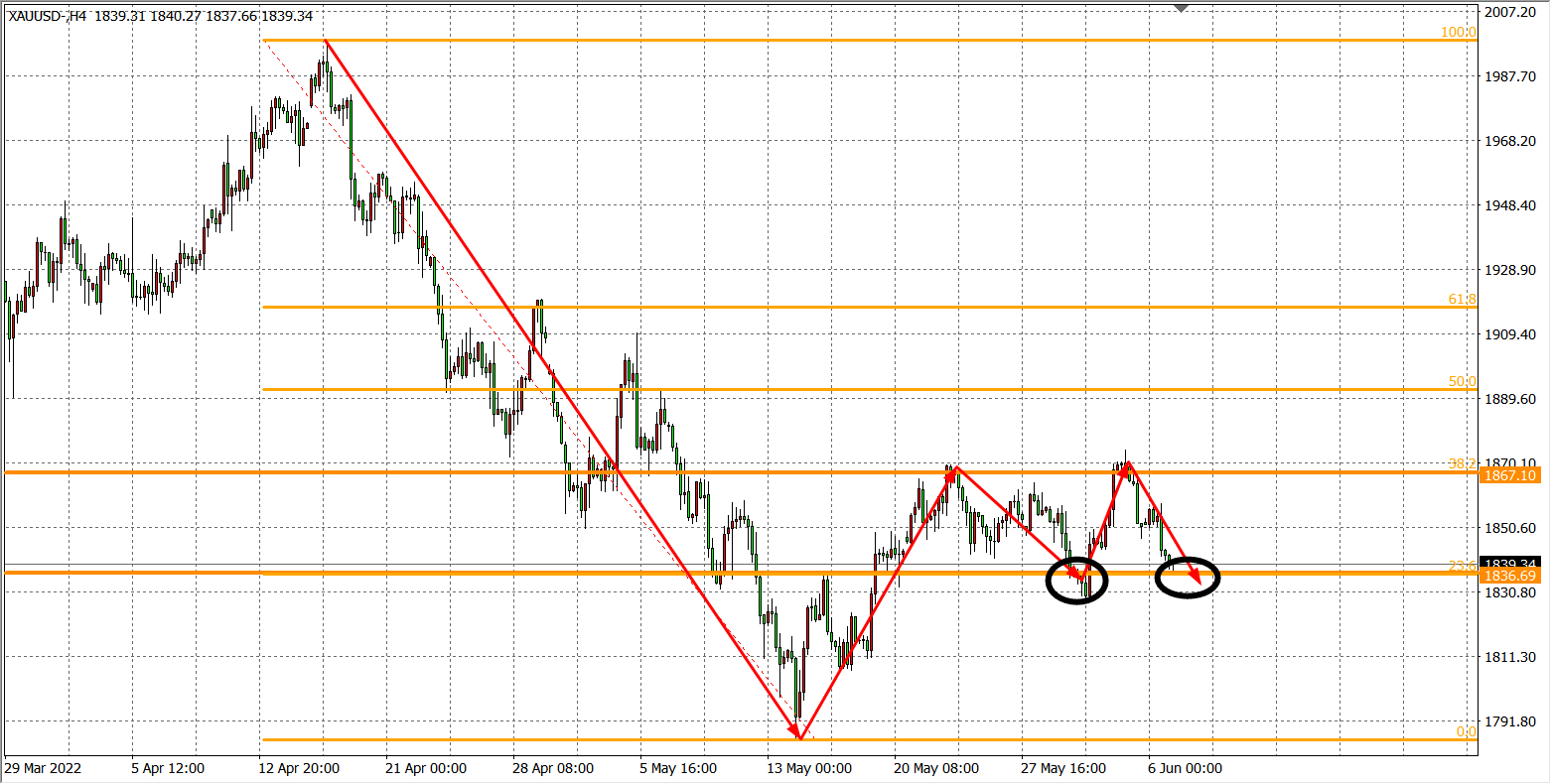 交易策略:在1836.00之下看跌,目标1820.00          1810.00