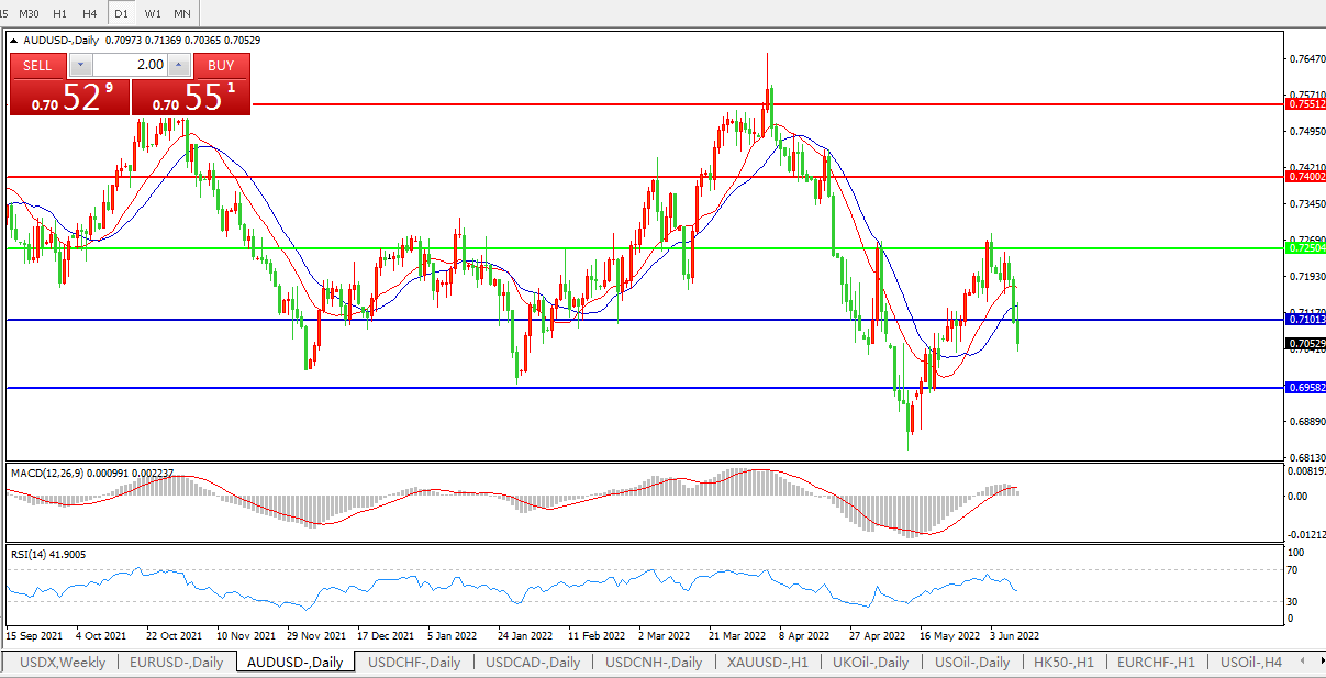 技术面简析:日图均线多头排列但短期均线拐头迅速,汇价加速下行,MACD运行于0轴上但量能开始缩量,RSI迅速走弱,预计汇价大概率将进一步下行。