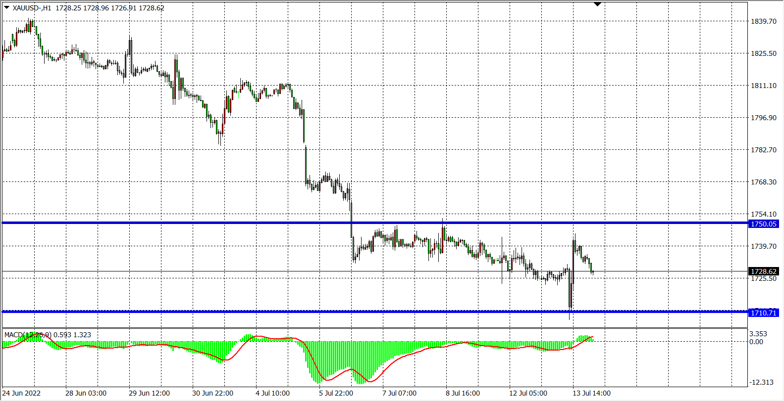 现货黄金XAUUSD 1小时图