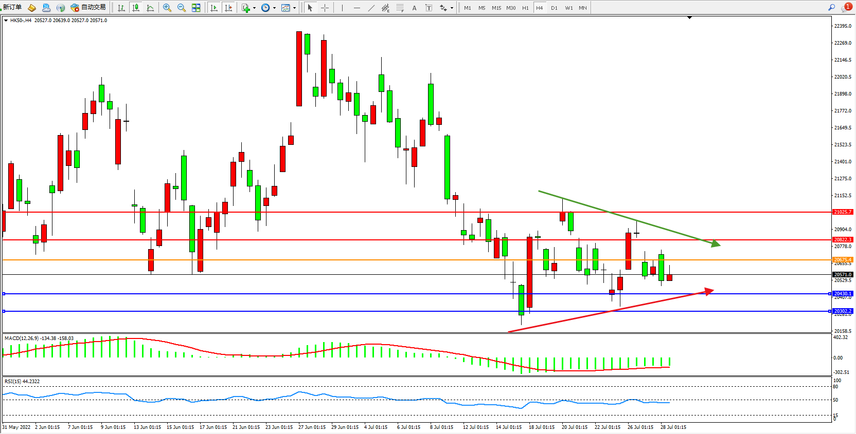 恒指HK50 4小时图