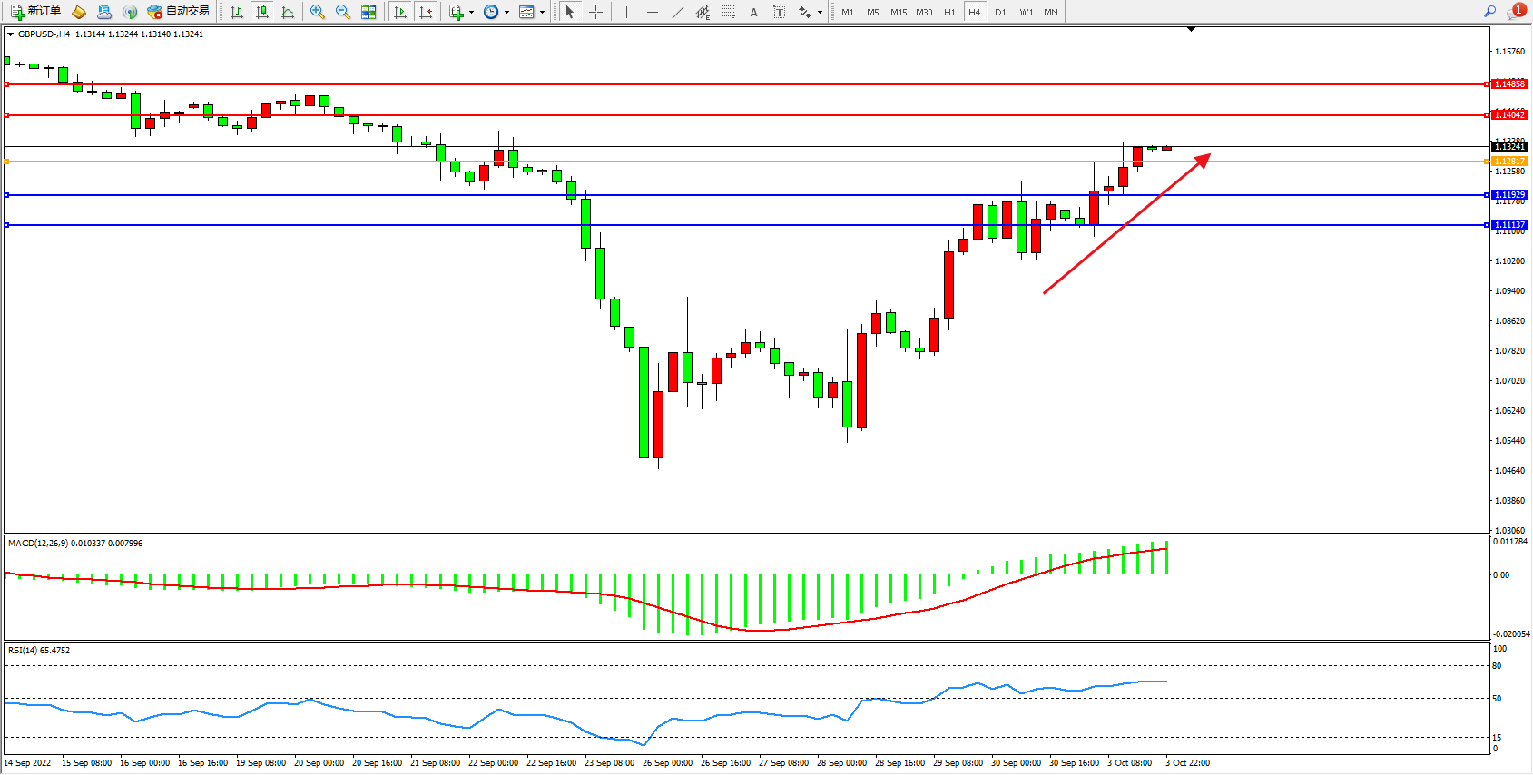 交易策略:1.12817上方看涨,目标1.14042、1.14858
