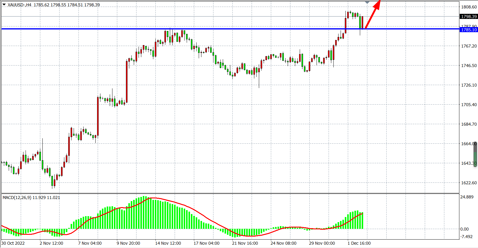 交易策略:在1785.00 之上看涨,目标1800.00 1820.00