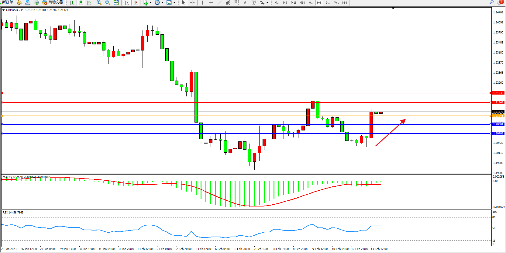 交易策略:1.21241上方看涨,目标1.21649、1.21936