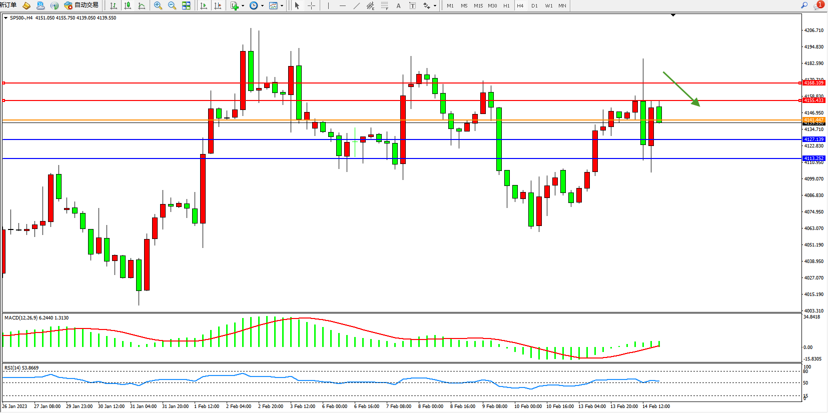 标普SP500——4小时K线图显示: