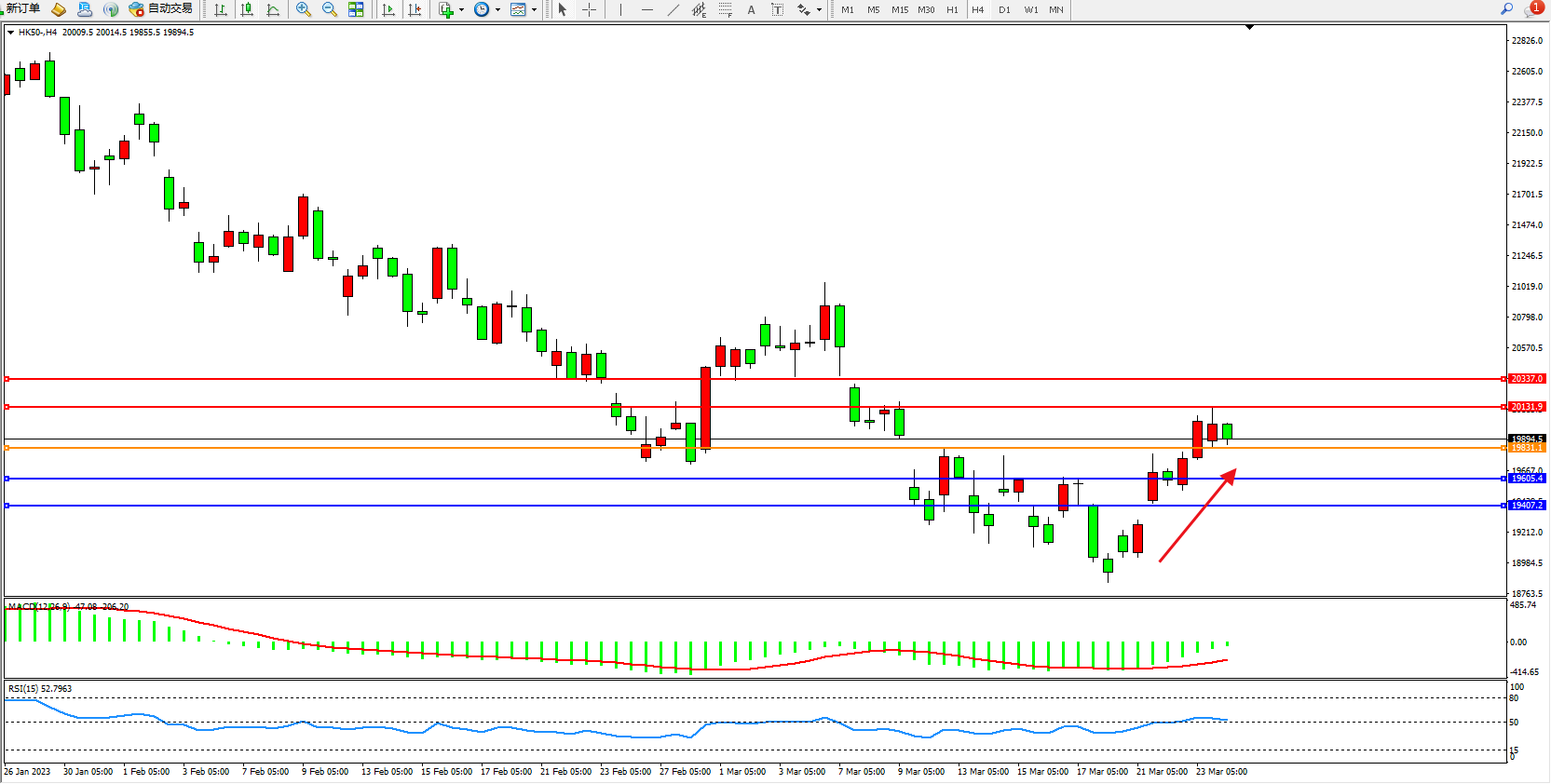 恒指HK50 4小时图