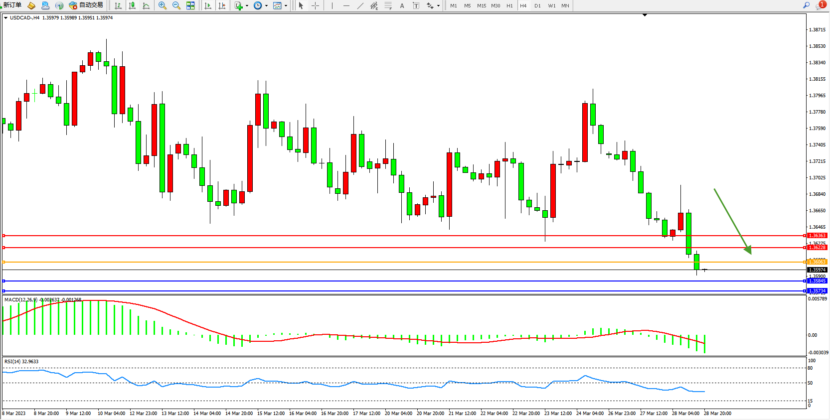 交易策略:1.36063下方看跌,目标1.35845  1.35734