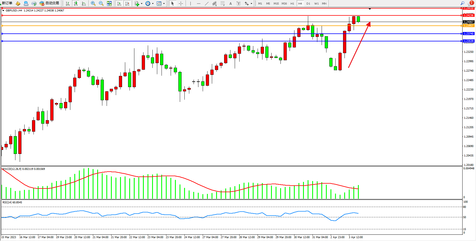 交易策略:1.23957上方看涨,目标1.24236  1.24430