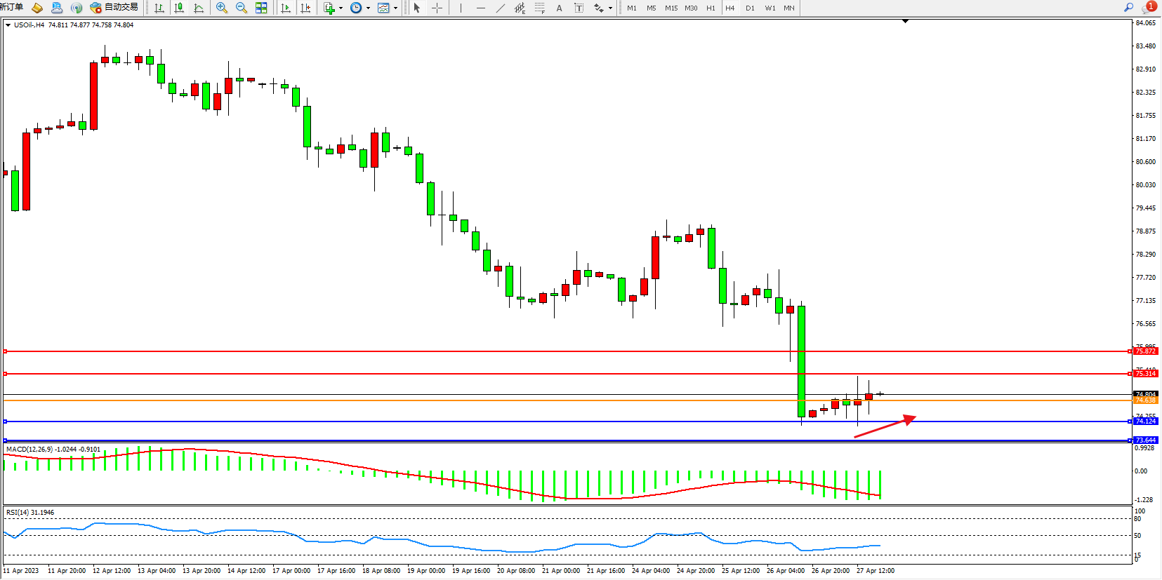 支撑位:74.124  73.644