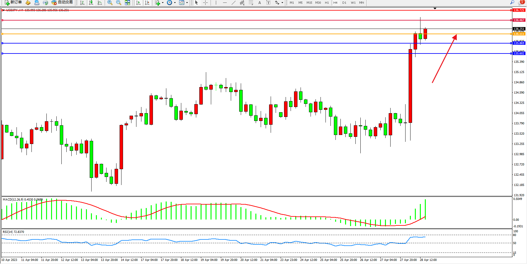 阻力位:136.467 136.725