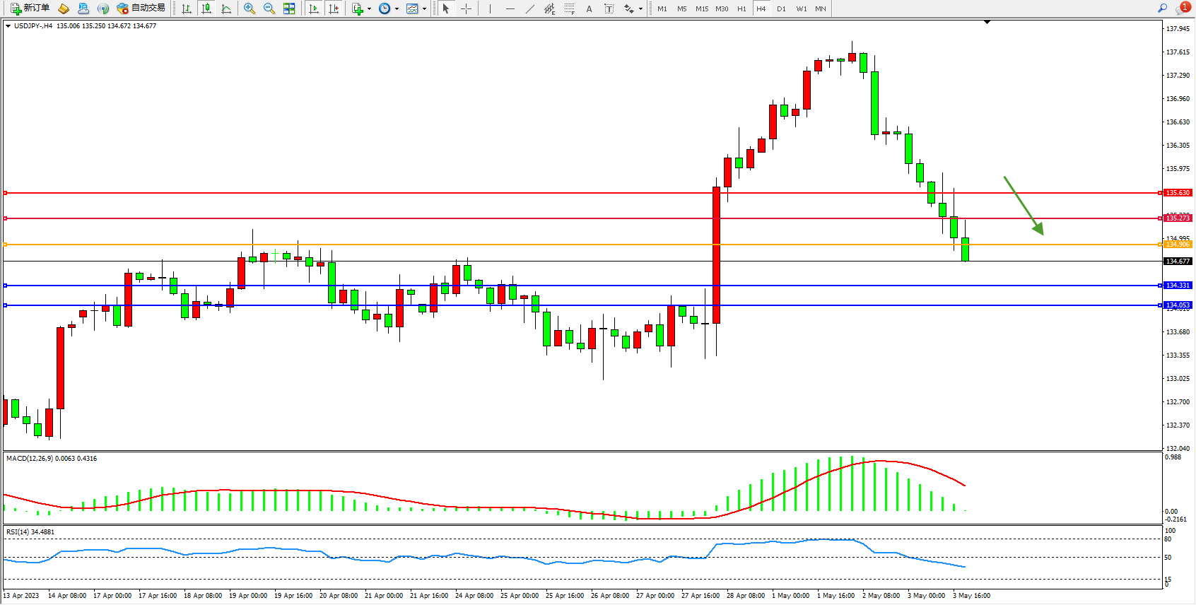 支撑位:134.331 134.053