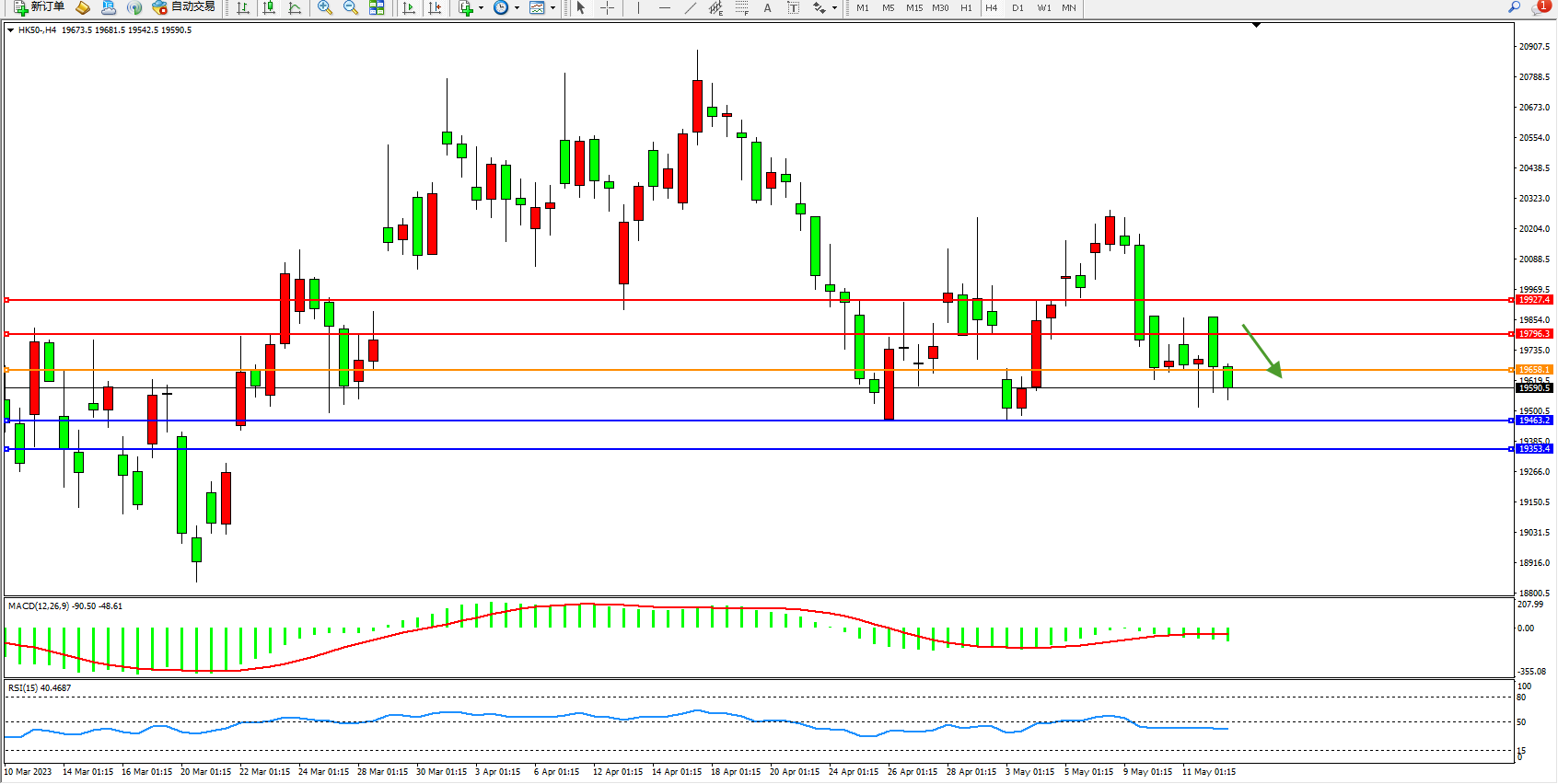 恒指HK50 4小时图