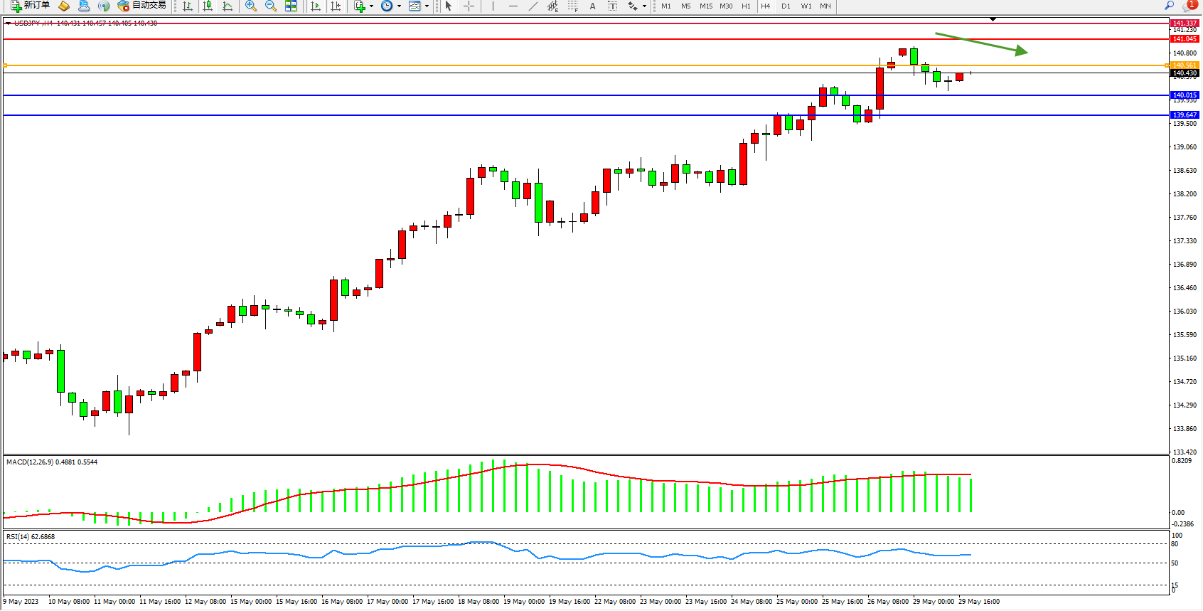 美元兑日圆维持140.430附近震荡,由于市场目前已经消化了美联储进一步加息的预期,美元兑日将很难延续最近的涨势。市场目前已经完全消化了美联储在6月或7月加息25个基点的预期,而降息预期的定价也已经下降,这消除了美联储和投资者之间的观点差距。
