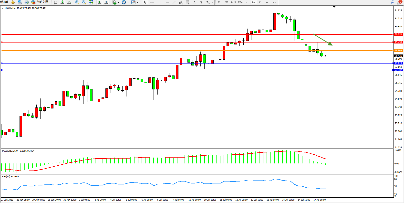 交易策略:78.809下方看跌,目标77.829 77.302