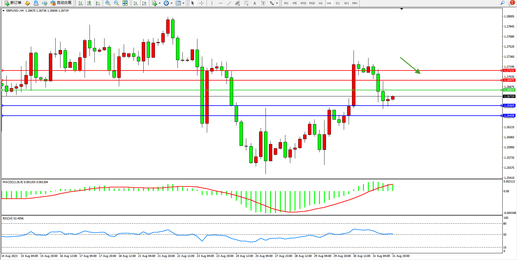 交易策略:1.26819下方看跌,目标1.26569  1.26408