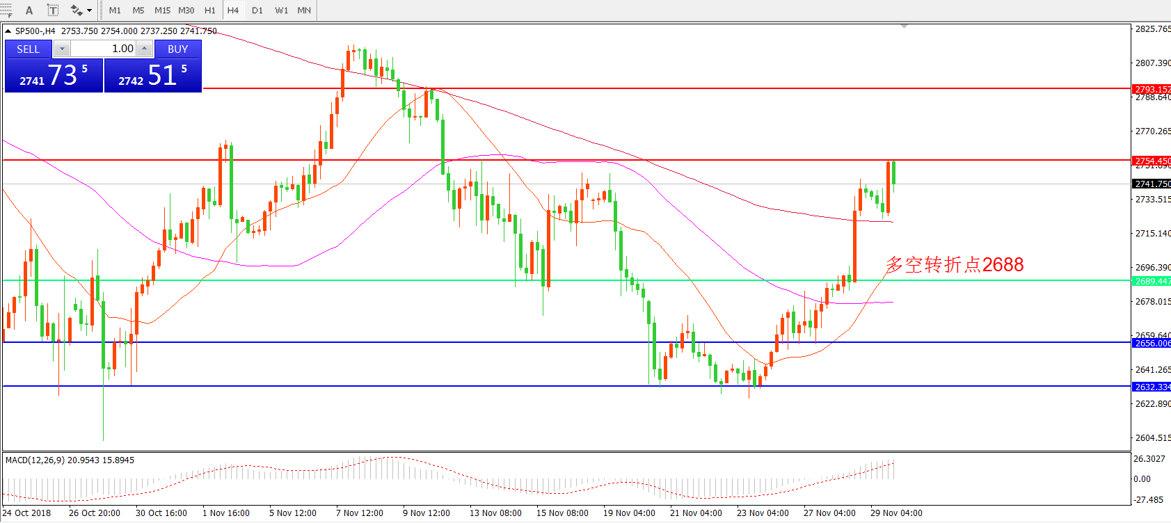 标普500 SP500  4小时图: