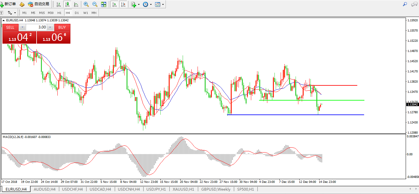欧元兑美元EURUSD  4小时图: