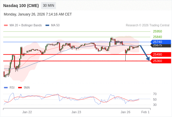 交易策略: 在 25740 之下,看跌,目标价位为 25490 ,然后为 25360 。