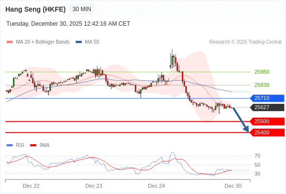 在 25710 之下,看跌,目标价位为 25500 ,然后为 25400 。