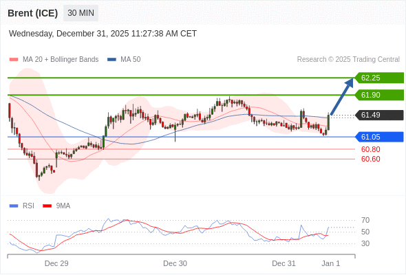 在 61.05 之上,看涨,目标价位为 61.90 ,然后为 62.25 。