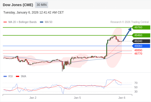在 49060 之上,看涨,目标价位为 49460 ,然后为 49760 。