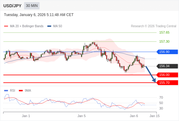 在 156.90 之下,看跌,目标价位为 156.00 ,然后为 155.70 。