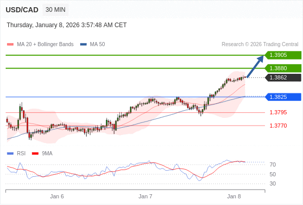 在 1.3825 之上,看涨,目标价位为 1.3880 ,然后为 1.3905 。