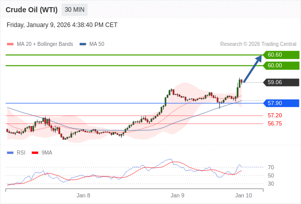 交易策略: 在 57.90 之上,看涨,目标价位为 60.00 ,然后为 60.60 。