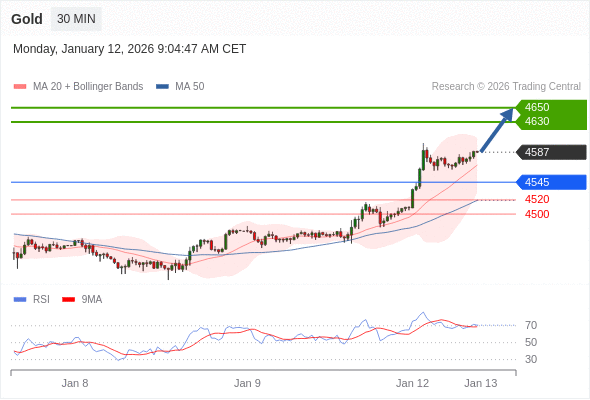 交易策略: 在 4545 之上,看涨,目标价位为 4630 ,然后为 4650 。