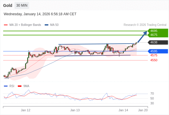 在 4595 之上,看涨,目标价位为 4675 ,然后为 4695 。