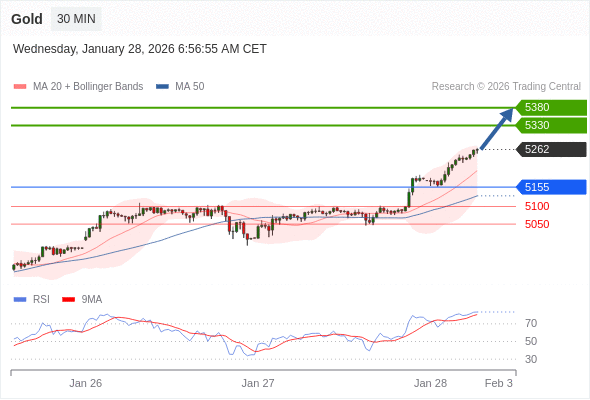 在 5155 之上,看涨,目标价位为 5330 ,然后为 5380 。
