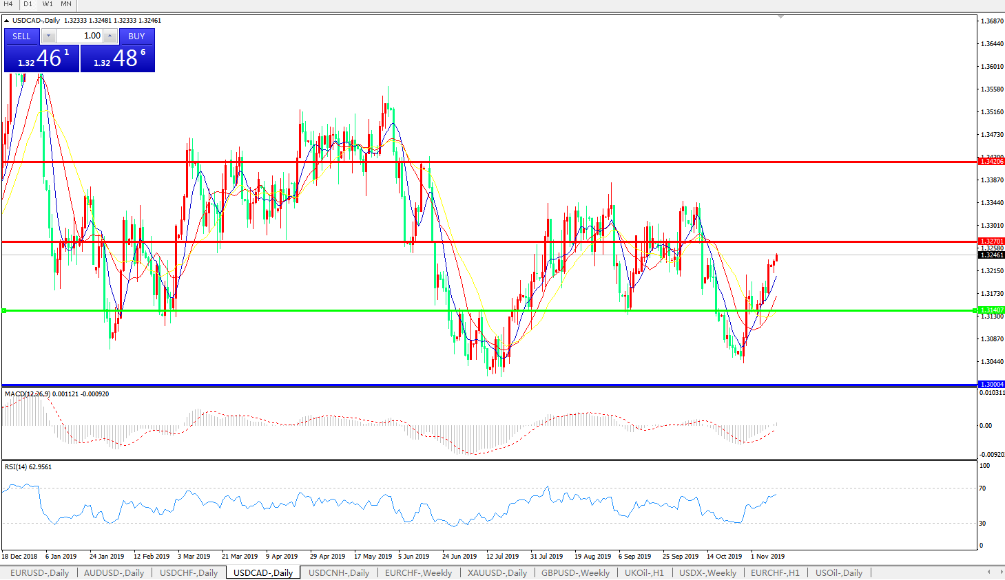 美元兑加元USDCAD    日线图: