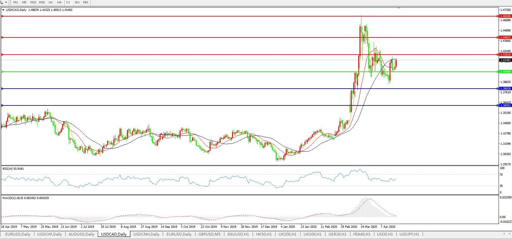 美元兑加元USDCAD 日线图: