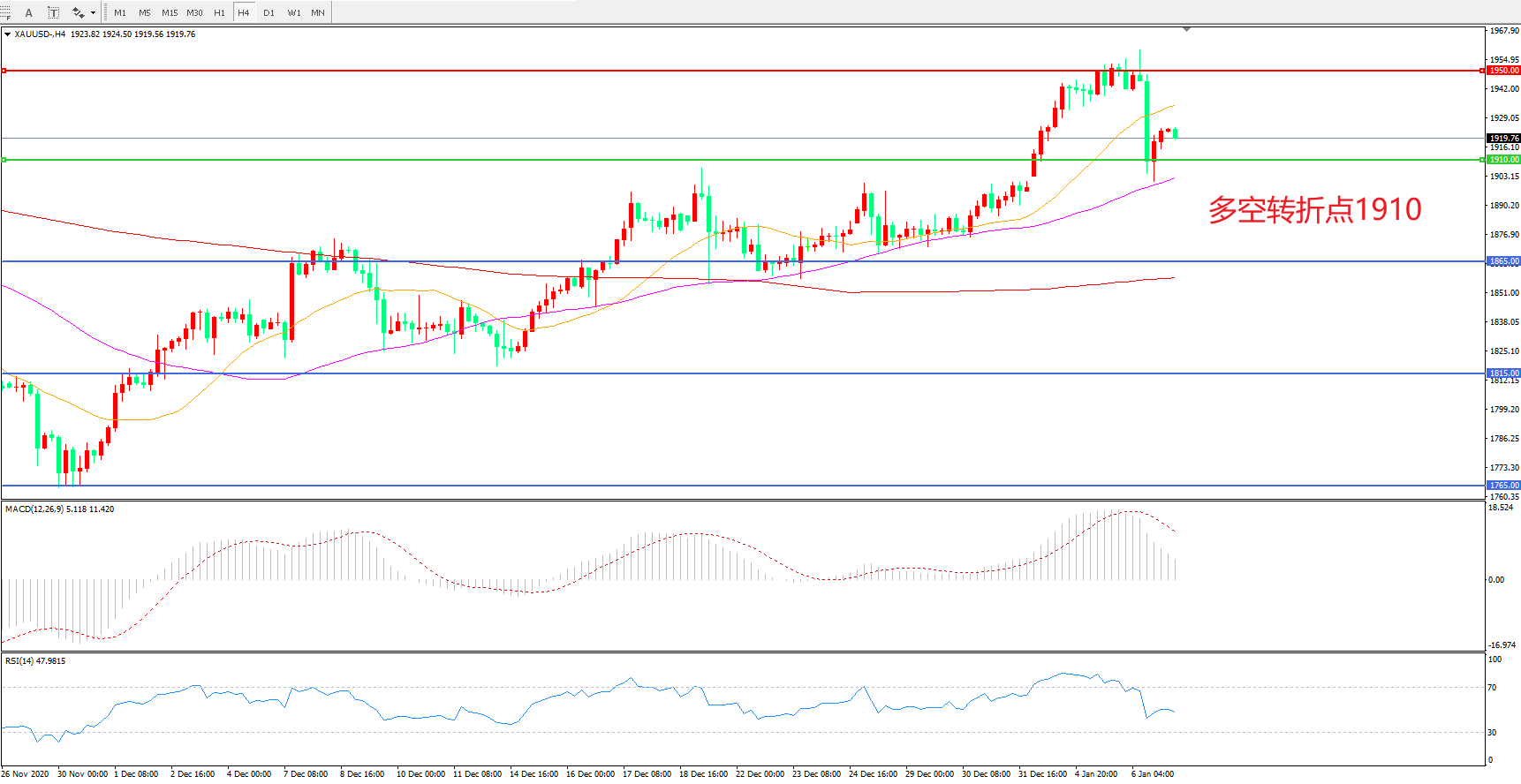 现货黄金XAU/USD    4小时图