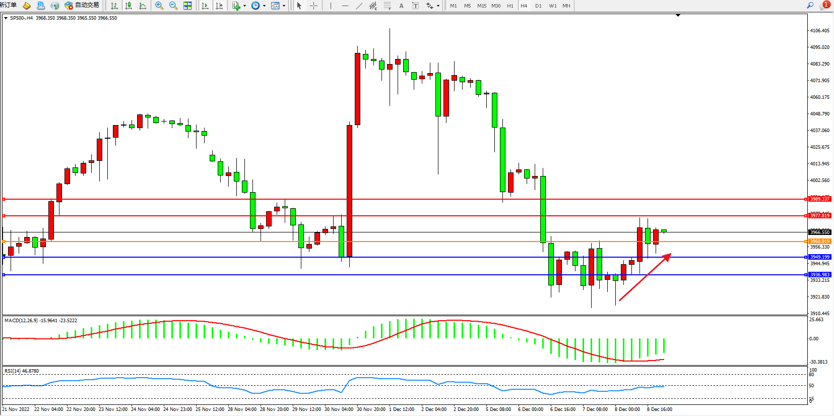 标普SP500——4小时K线图显示: